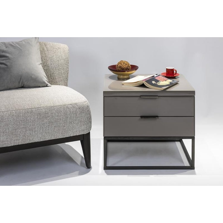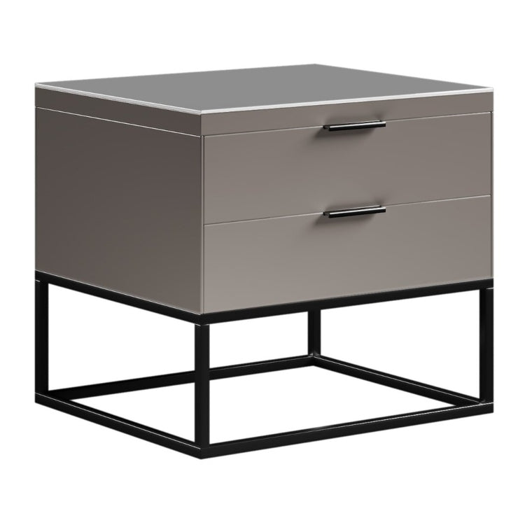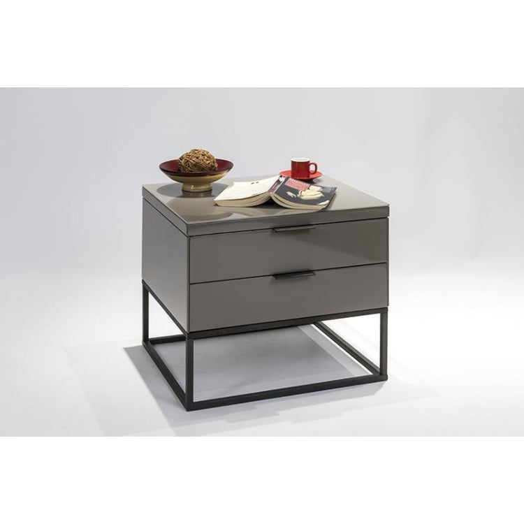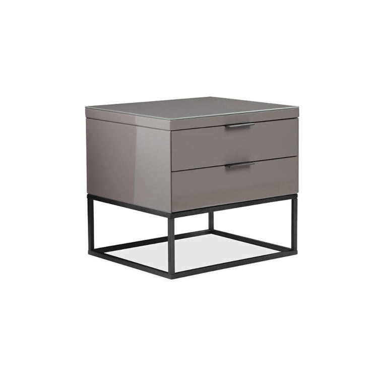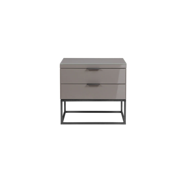 Details - Nightstand with high-gloss stone box and glass back top painted in high-gloss stone with the powder coating.