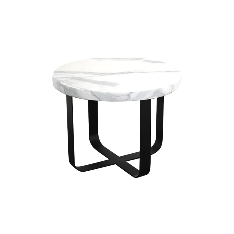 Details - Side table legs painted in antique black with marble effect paper laminated top and metal frame.