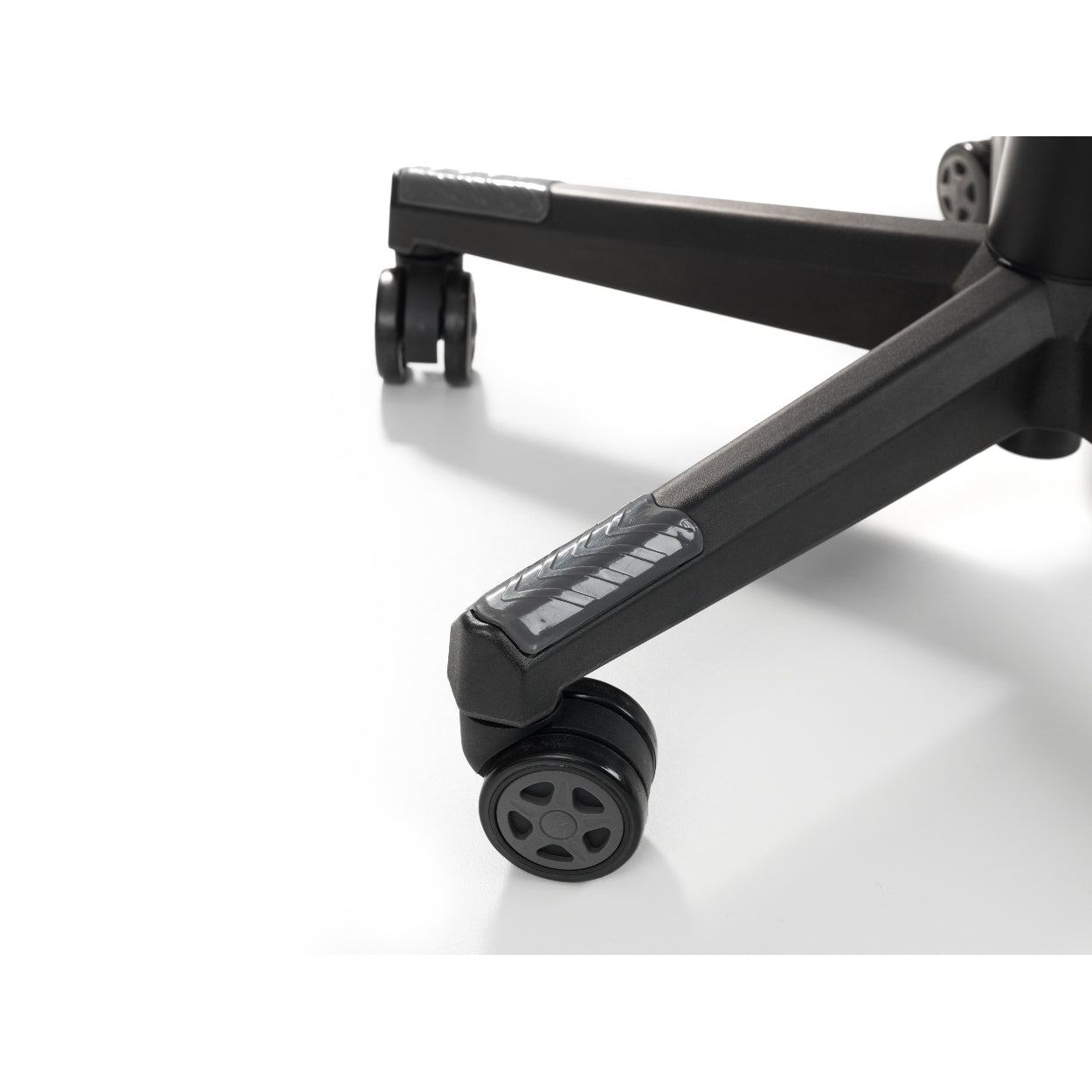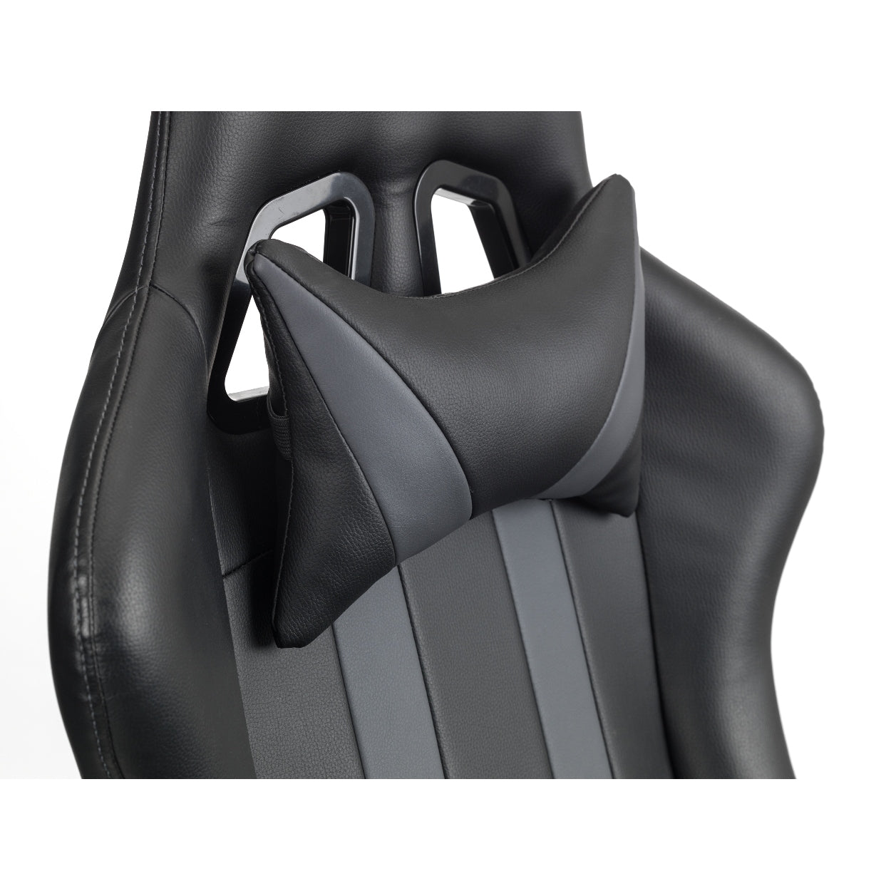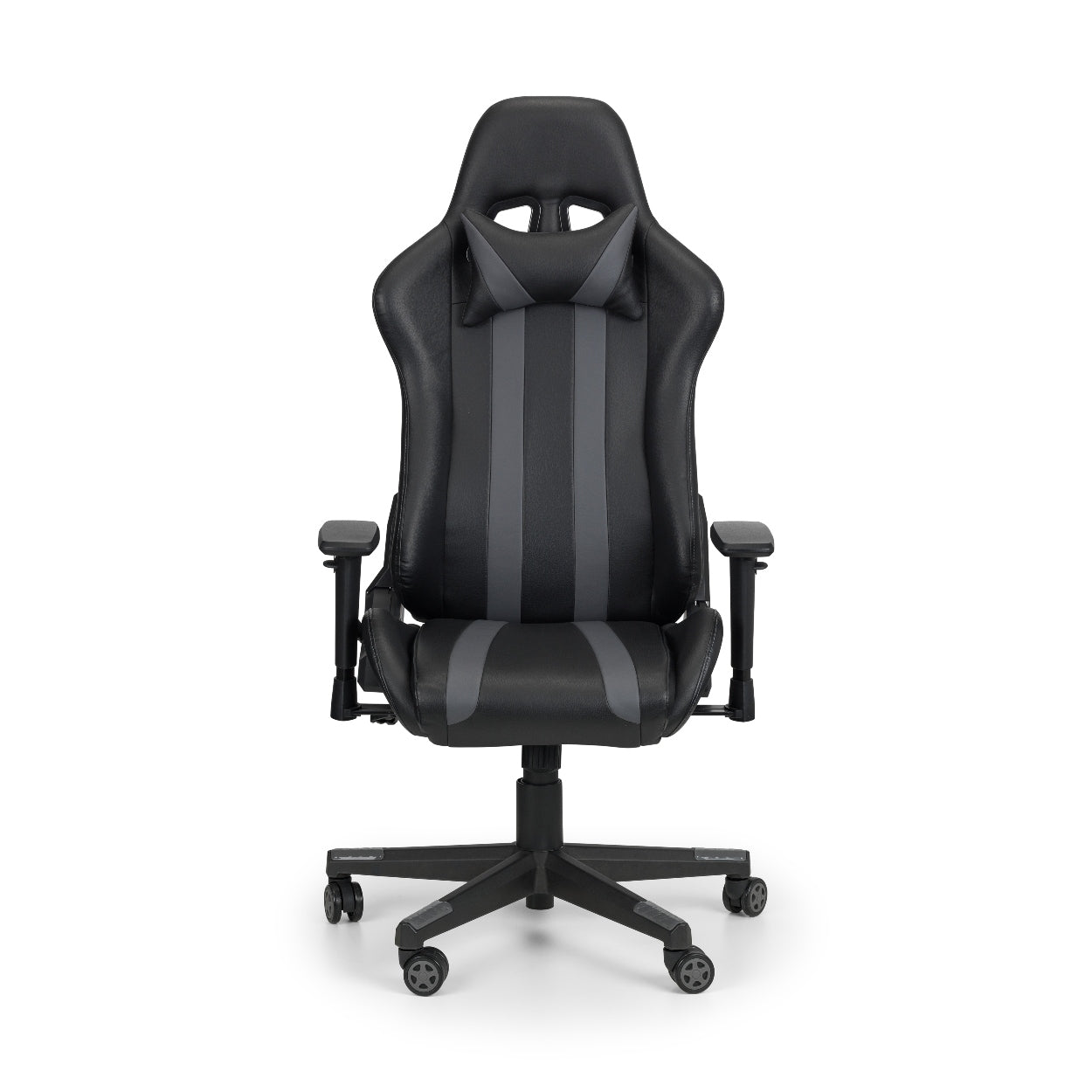 Finished in black faux leather with striking grey accents, the Meteor Gaming Chair features a high back with a head pillow, offering full back and neck support. This Chair and be fully adjusted including the armrests, allowing you to get into your best position for your hours of gameplay or long office hours. Easily move around on the Meteor gaming chair upon its 5 castors, suitable for people spending long days at a desk.