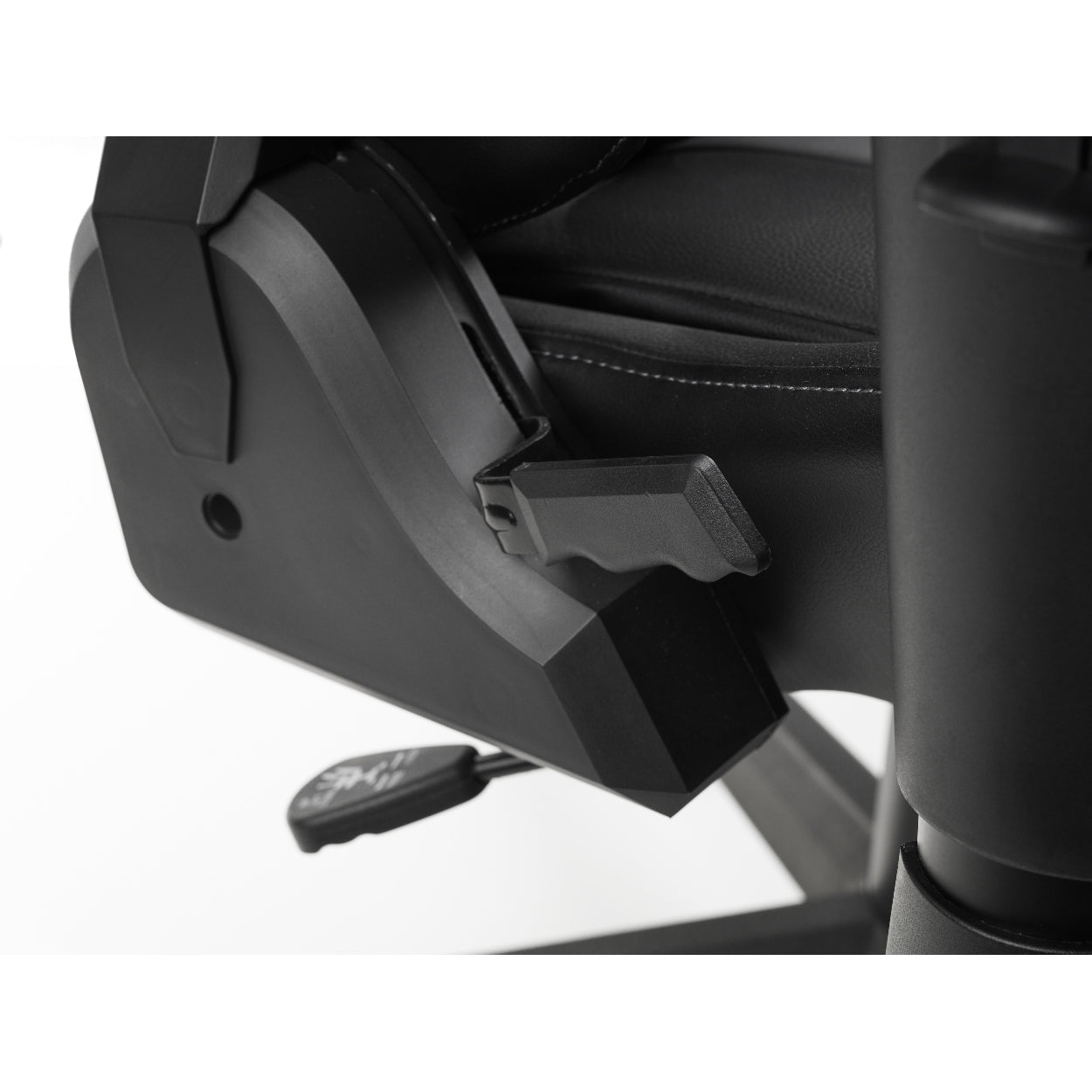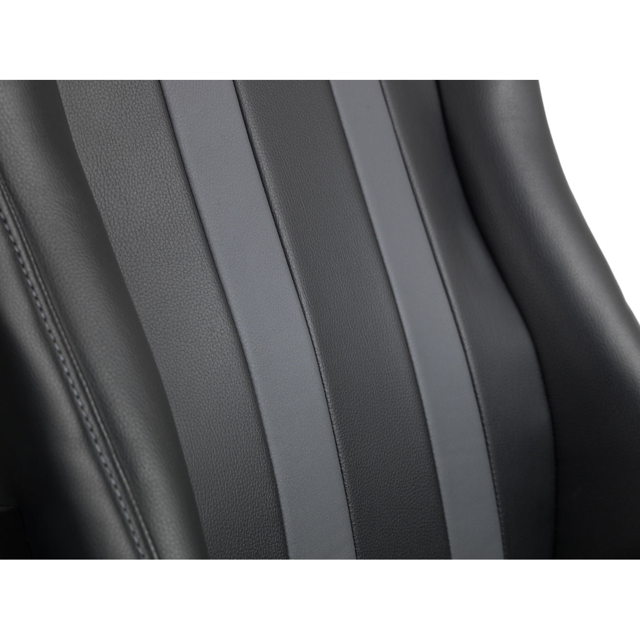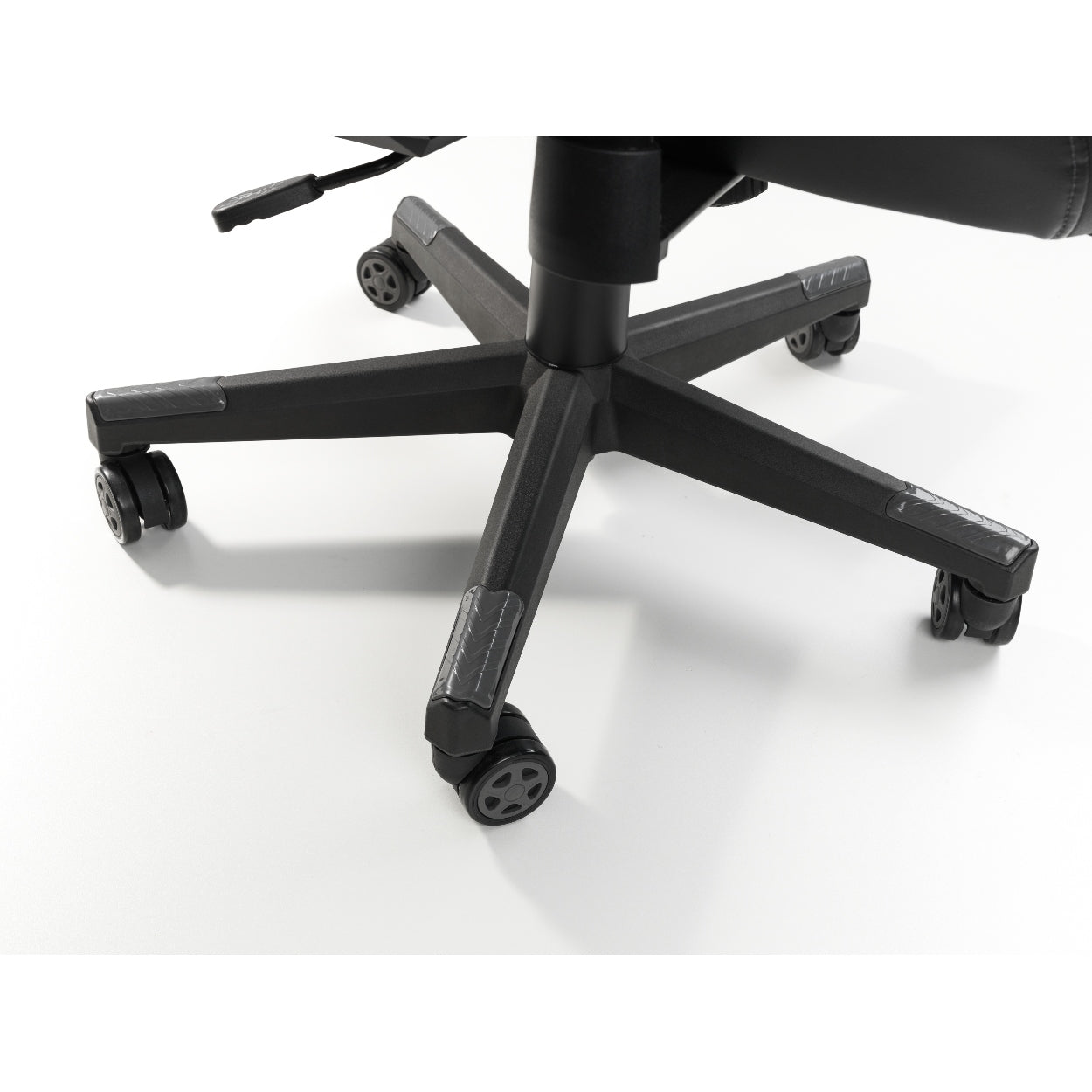 Finished in black faux leather with striking grey accents, the Meteor Gaming Chair features a high back with a head pillow, offering full back and neck support. This Chair and be fully adjusted including the armrests, allowing you to get into your best position for your hours of gameplay or long office hours. Easily move around on the Meteor gaming chair upon its 5 castors, suitable for people spending long days at a desk.