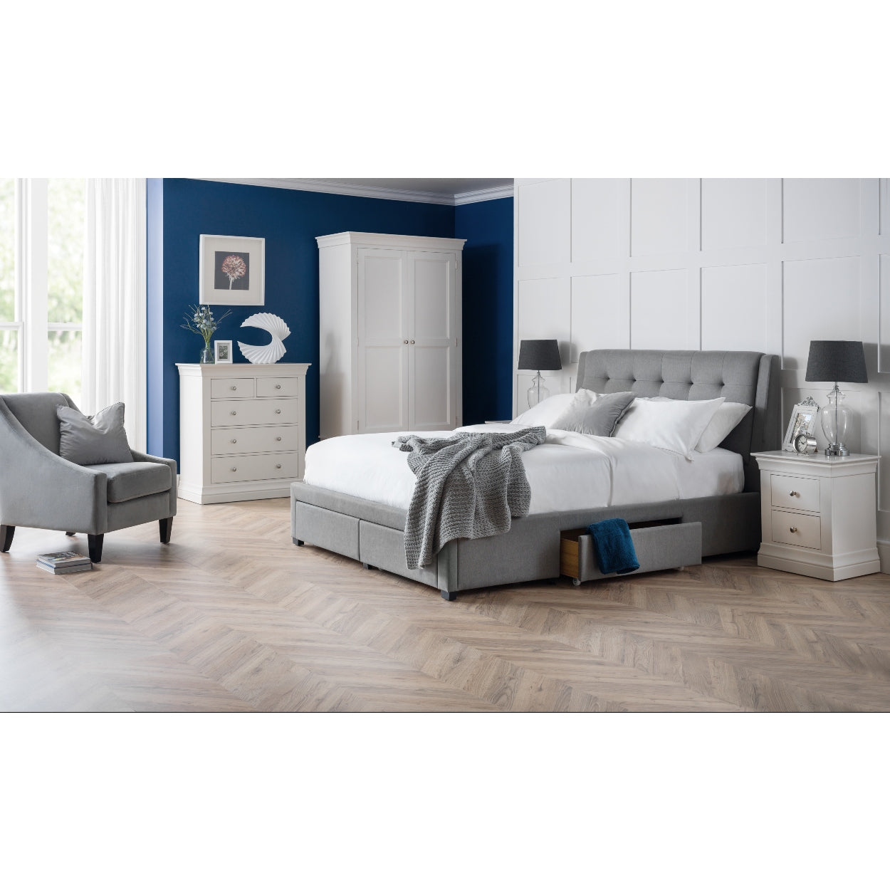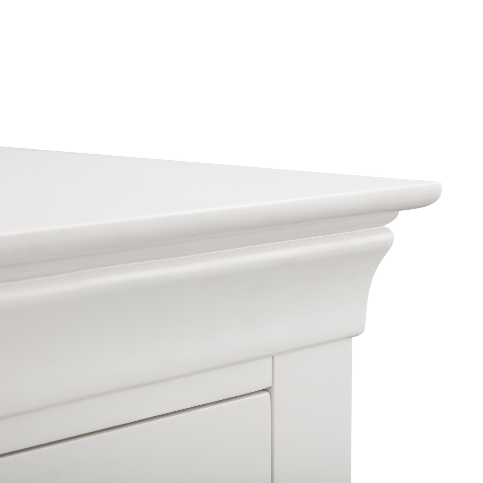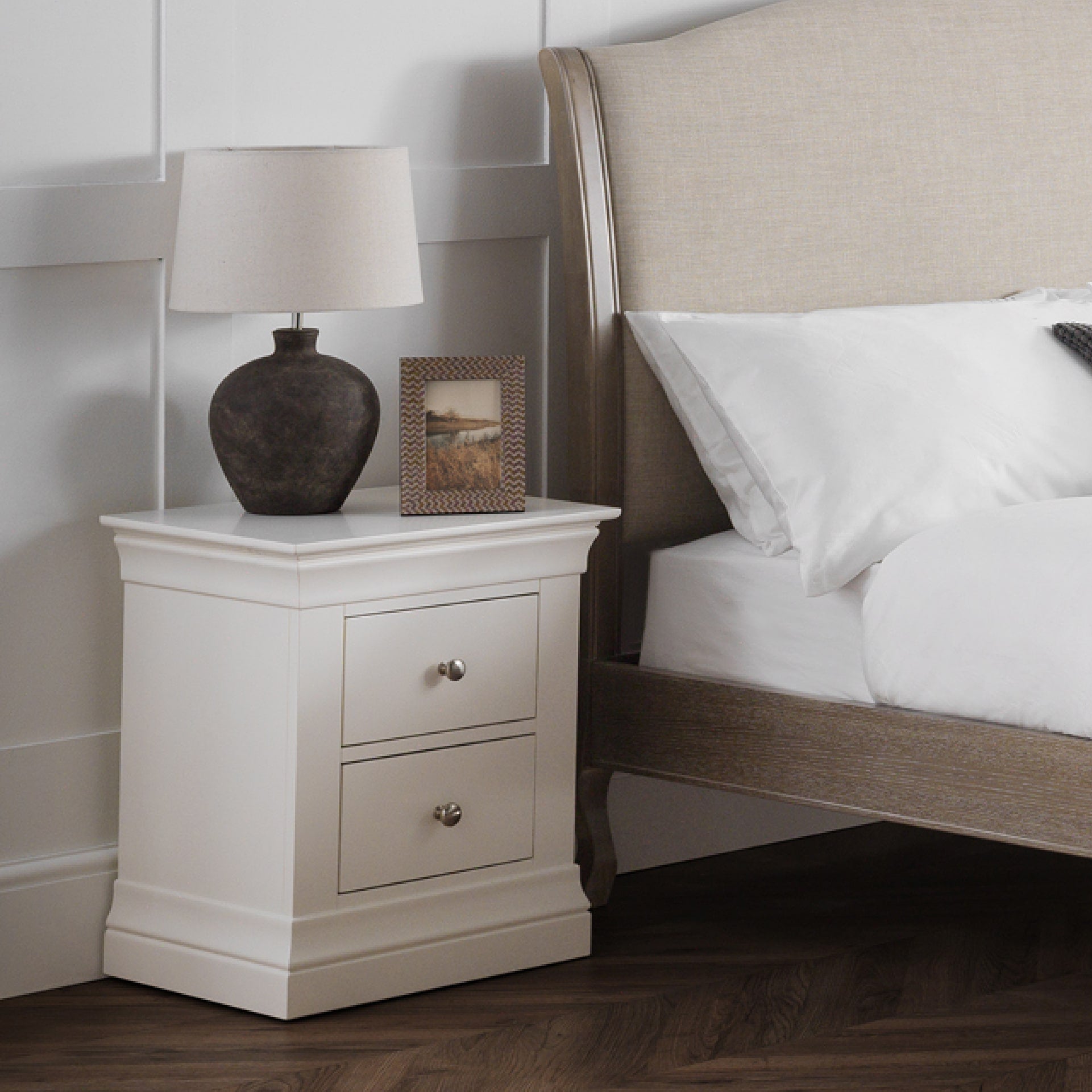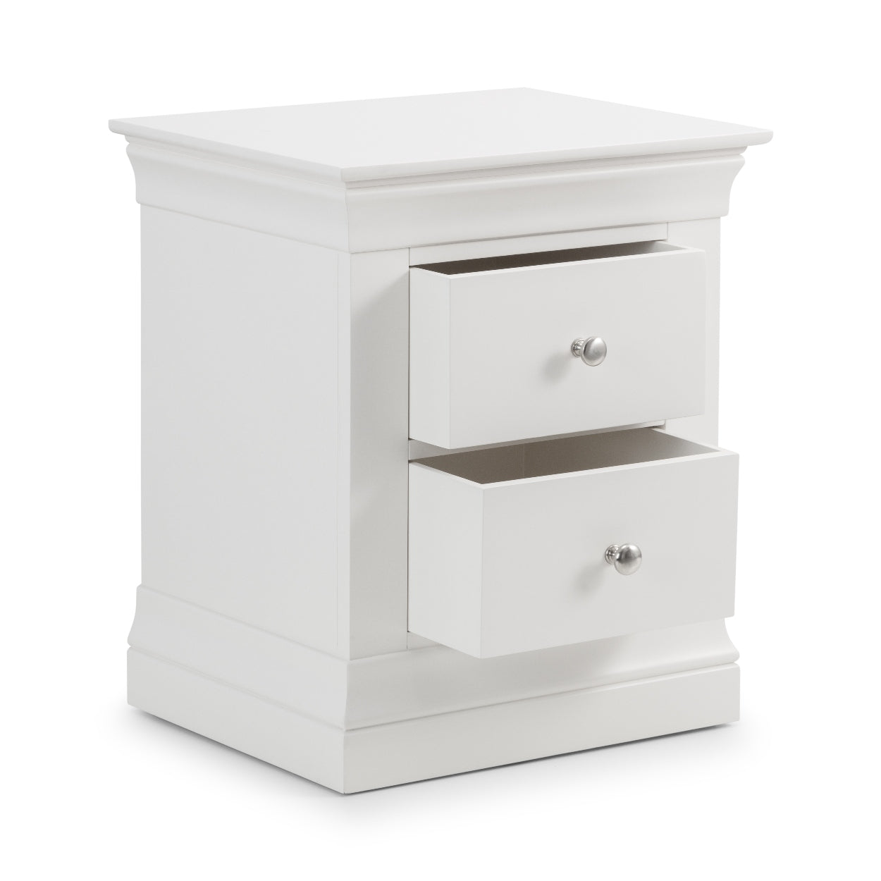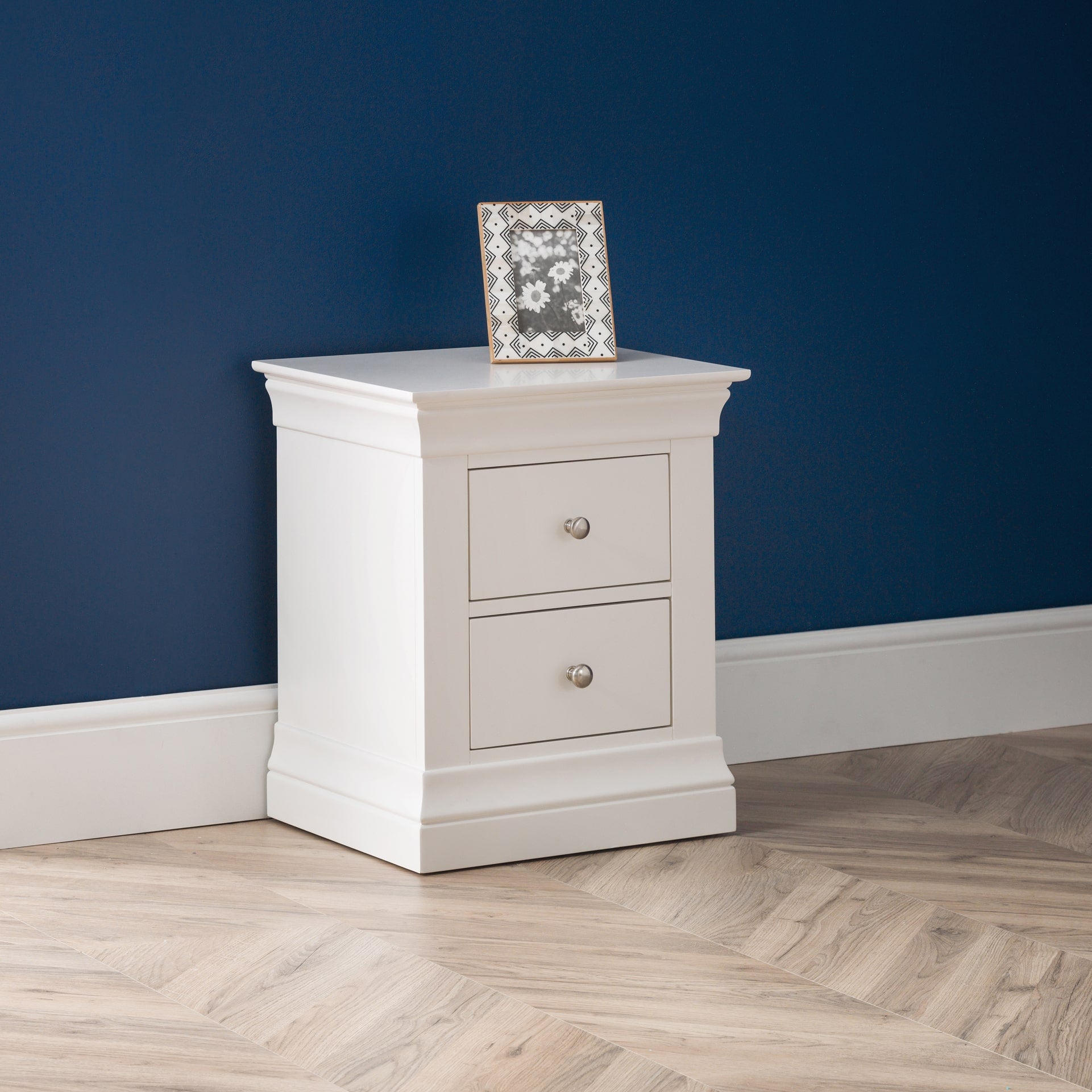 The Clermont Bedroom Collection is finished in a striking white lacquered finish, with simple clean lines that add a feeling of light and space. Crafted from Pine and MDF, featuring brushed steel handles, this elegant French-inspired design is suitable for both contemporary and traditional settings. The Clermont Bedside has 2 drawers, suitable to stow away your nighttime essentials.