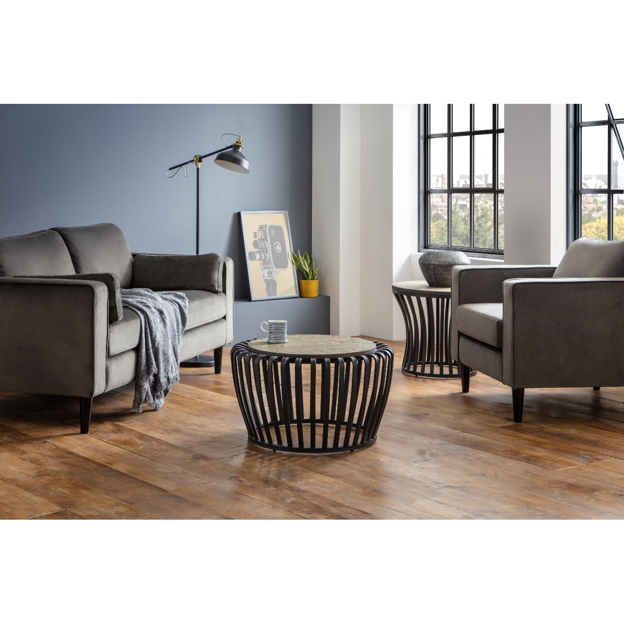 On a sturdy black metal frame, the Washington Lamp Table is an attractive, trendy piece. The table juxtaposes its narrow base with a warm elm finish, enhancing the wood grain effect. Pair with the matching Julian Bowen Washington coffee table, perfect for a wide range of décor